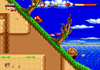 Parallax scrolling shines in this title, giving depth to backgrounds such as distant islands and stormy skies. Water effects are especially noteworthy: rippling waves and occasional splashes add a dynamic flair to seaside stages. The color palette is bright and varied, ensuring each world feels distinct, from the sunlit tropics to the eerie glow of secret caverns.