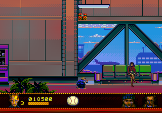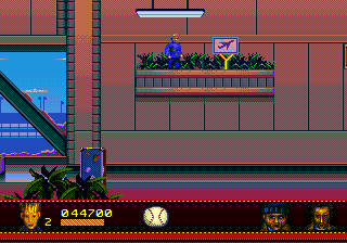 Visually, Home Alone 2 leans into the colorful, cartoon-like aesthetic typical of early ’90s console titles. Character sprites for Kevin, Harry, and Marv are instantly recognizable and animated with enough personality to sell every exaggerated reaction—whether it’s Kevin’s cheeky grin or the bandits’ stunned stumbles. Backgrounds feature layered parallax scrolling that gives depth to New York’s skyline and indoor settings alike, reinforcing the sense of adventure in a vast, wintry city.
