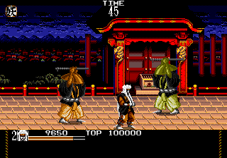Sprinkled throughout each level are ancient scrolls that charge your special magic power. Once fully charged, unleashing kabuki magic transforms your warrior into an unstoppable force for a limited duration—think widescreen blasts of energy that clear the screen of lesser enemies. Hidden life-bar refills are cleverly tucked into secret alcoves or dropped by tougher foes, encouraging exploration off the beaten path even in a strictly linear game.