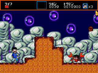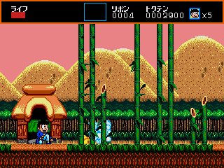 The stage design encourages exploration: pits in the ground often conceal underground tunnels, while hopping onto flying turtle shells or springboards may launch you into cloud-topped platforms. Collectible ribbons serve as the game’s currency, allowing players to purchase power-ups, extra lives, and special items from concealed vendors sprinkled throughout the stages. These shops not only reward thorough exploration but also add a strategic layer—deciding whether to conserve ribbons for tougher levels or splurge early on helpful enhancements.