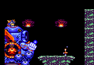 Backgrounds layer multiple parallax planes that lend depth to environments ranging from lush forests to industrial fortresses of the Empire of Gedol. Each level boasts a unique aesthetic, from glimmering castle walls to stormy skies behind the giant robot battleground. Special effects—rocket flames, explosions, and shimmering power-ups—pop off the screen, making every encounter feel impactful.