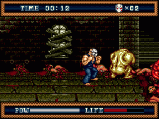 Overall, the attention to detail in both sprite work and background art fosters an immersive horror experience. The color palette, dominated by deep reds and shadowy blacks, maintains a consistent, ominous tone. Whether you’re clearing a library of possessed tomes or descending into a blood-flooded chapel, the graphical enhancements ensure that Splatterhouse 3 stands out on the Genesis lineup.