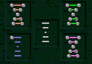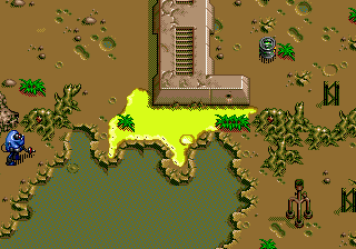 Item management also plays a crucial role. Scattered throughout the lab are vials of extra ooze, temporary shields, and kinetic boosters that let you surge forward at high speed. Deciding when to use these consumables is key to conserving resources for the harder puzzle rooms near the end of each stage. Although the control scheme occasionally feels slippery—especially on Genesis hardware—mastering the ebb and flow of your gelatinous self is deeply satisfying.