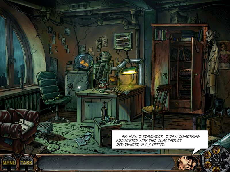 As in most hidden-object titles, some locations transition into seek-and-find segments. Here, you must pick out listed items from cluttered tableaux before proceeding. The hint system, cleverly represented by the chamber of Nick’s revolver, dispenses a single bullet that points toward an elusive object. Extra hints appear as brass cartridges scattered throughout the scenery, encouraging thorough exploration and rewarding eagle-eyed players.