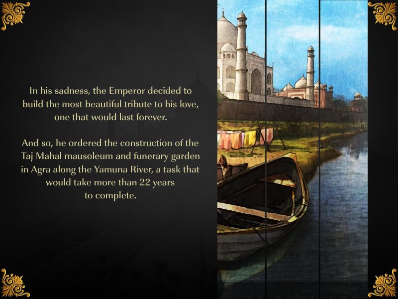 Rooted in the poignant history of the Taj Mahal, the narrative unfolds as a tribute to Emperor Shah Jahan’s devotion to his wife Mumtaz Mahal. While the game does not delve into a fully scripted dialog, scattered journal entries and voice-over excerpts recount tales of love, loss, and commemoration. Each new area reveals a piece of this emotional mosaic, lending meaningful context to the puzzles.