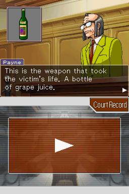 HUD elements and menus are cleanly designed, with intuitive touchscreen icons for examining, presenting, and investigating. The swift transitions between investigation and trial keep the flow brisk, and the DS’s dual screens neatly separate dialogue boxes from character portraits without cluttering the play area.
