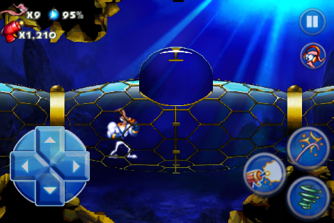 On handhelds, resolution constraints are handled gracefully. The iPhone’s Retina display makes every color pop, and the DSi’s LCD brings out fine details in Jim’s armor and the cluttered stage backdrops. Though small screen sizes naturally limit field of view, clever zooming and sprite scaling ensure that the frenetic action is never lost or muddied.