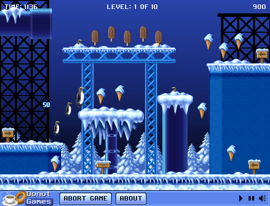 Adding urgency to each of the ten levels is a ticking clock. Take a wrong turn and you might still recover the penguin troop, but the precious seconds slip away, costing you those coveted time-bonus points. Conversely, mastering an optimal path rewards swift completion and a high score, making every stage a tight balance between thorough exploration and speedy precision.