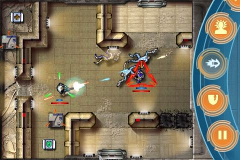 The top-down Combat view employs a clean, stylized aesthetic optimized for mobile screens, with crisp character sprites and vibrant particle effects for biotic powers and explosions. Enemy designs—ranging from shield-bearing troopers to brute synth creatures—are easily distinguishable, allowing quick target prioritization even in the heat of action. Animations for firing, reloading, and biotic activations feel fluid, though occasional frame drops can occur in visually dense arenas.