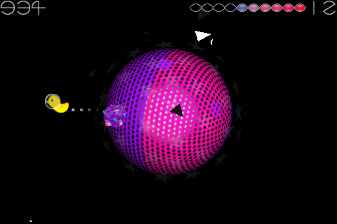 As meteors descend, their colored shadows serve as clear indicators of where they belong on the sphere’s surface. This color-matching challenge grows increasingly frantic as meteor showers intensify, demanding both quick reflexes and keen attention. Mistime a catch or misalign the segment, and you’ll lose a bar of your life gauge—adding palpable tension to each near-miss moment.