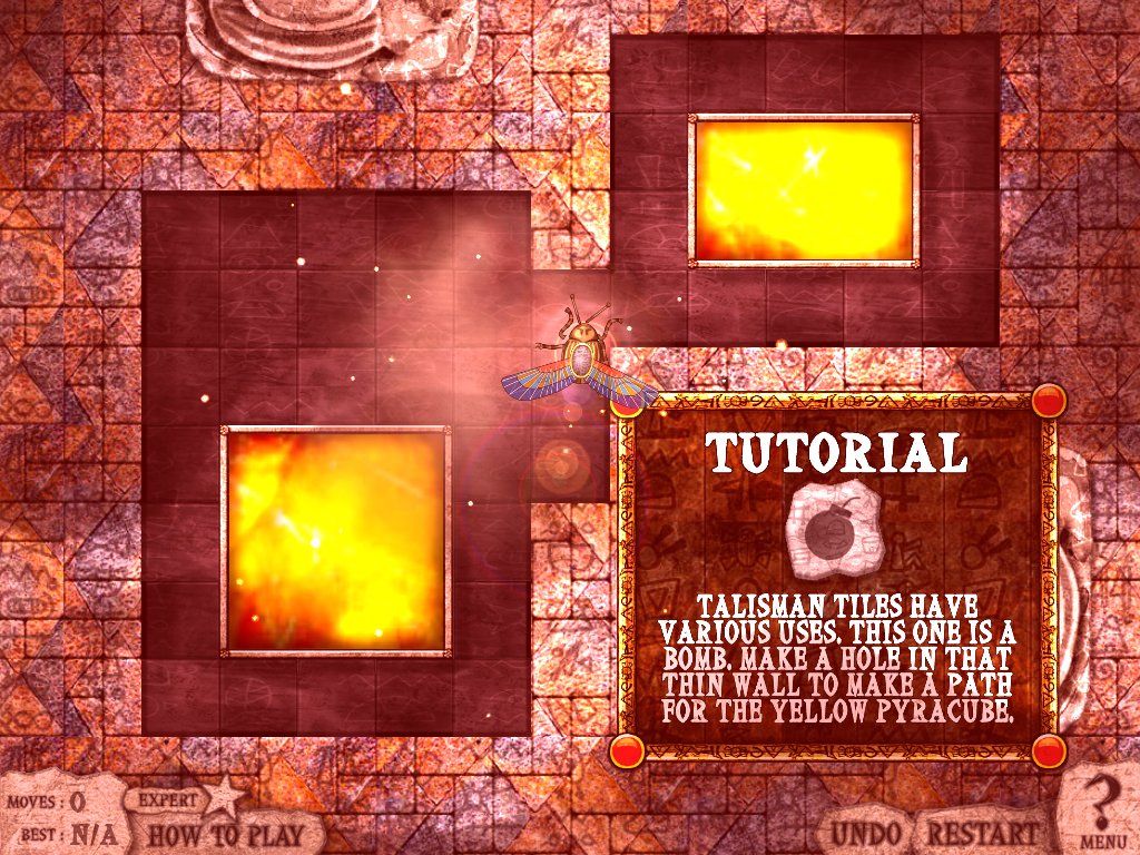 PyraCubes takes the familiar grid-based puzzle formula of Sokoban and dresses it in an inventive new shell. You control King Theban in scarab form, dragging colored cubes through intricate labyrinthine levels. The core objective is simple: collide like-colored cubes so that they touch and vanish. With each level neatly introducing new twists, the game keeps your mind engaged from start to finish.