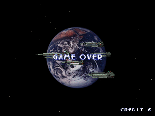 Enemy models and bosses are detailed and colorful, standing out sharply against often-muted backgrounds. You’ll encounter everything from clanking mechanical drones to shimmering energy orbs, each with distinct shapes and movement patterns. The boss designs are particularly memorable: massive warships, organic tentacled horrors, and crystalline constructs that tower over your fighter, all rendered with enough polygonal detail to look imposing even on the original PlayStation hardware.