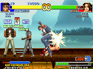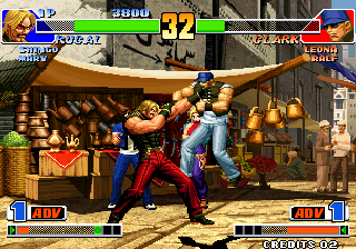 Background stages are equally impressive, blending vibrant colors with thematic touches—from the neon glow of Southtown’s streets to the fiery Pyro Stadium. Parallax scrolling and subtle environmental animations, like fluttering banners or drifting smoke, breathe life into the arenas without ever distracting from the core action. Even on aging hardware, the game maintains its frame‐perfect timing and crisp pixel art.