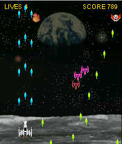 Particle effects shine during intense firefights. Explosions burst with layers of glowing debris, while laser blasts feature bright trails that contrast crisply against the dark space void. Even though the play area itself doesn’t scroll, background elements animate smoothly—twinkling stars, drifting asteroid debris, and occasional planet glimpses—adding depth to the battlefield.