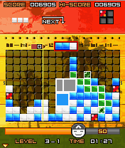 Lumines Mobile nails its core puzzle formula with simple yet deeply engaging mechanics. You drop two-by-two blocks of various colours onto a grid, and your goal is to arrange them into uniform squares before a sweeping timeline bar clears any completed sets. This rhythmic “beat” of play and clear lends a musical pulse to every move, making each cascade of blocks feel like part of a larger composition rather than a routine action.