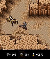 Given the constraints of feature-phone hardware, Starship Troopers: Roughnecks impresses with surprisingly detailed sprite work and atmospheric level design. The muted browns and grays of Halcyon’s dust-choked plains give way to the acidic glow of derelict alien hives, creating a constant sense of unease. Enemy Bugs are rendered with enough variety—Warriors, Plasma Bugs, and hulking Tankers—to keep your eyeballs on high alert.