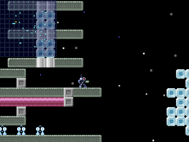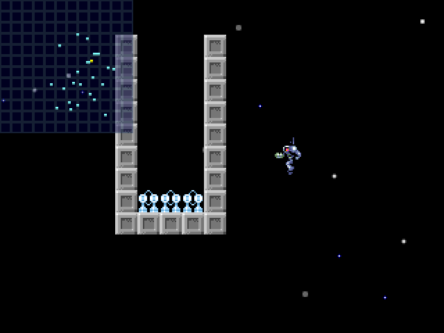 The jetpack thrust and laser shots come with simple but satisfying particle effects. A spray of sparks when you destroy a barrier and a brief thrust plume under the character add tactile feedback to each action. While not flashy, these little touches elevate the experience beyond “just blocks and sprites.”