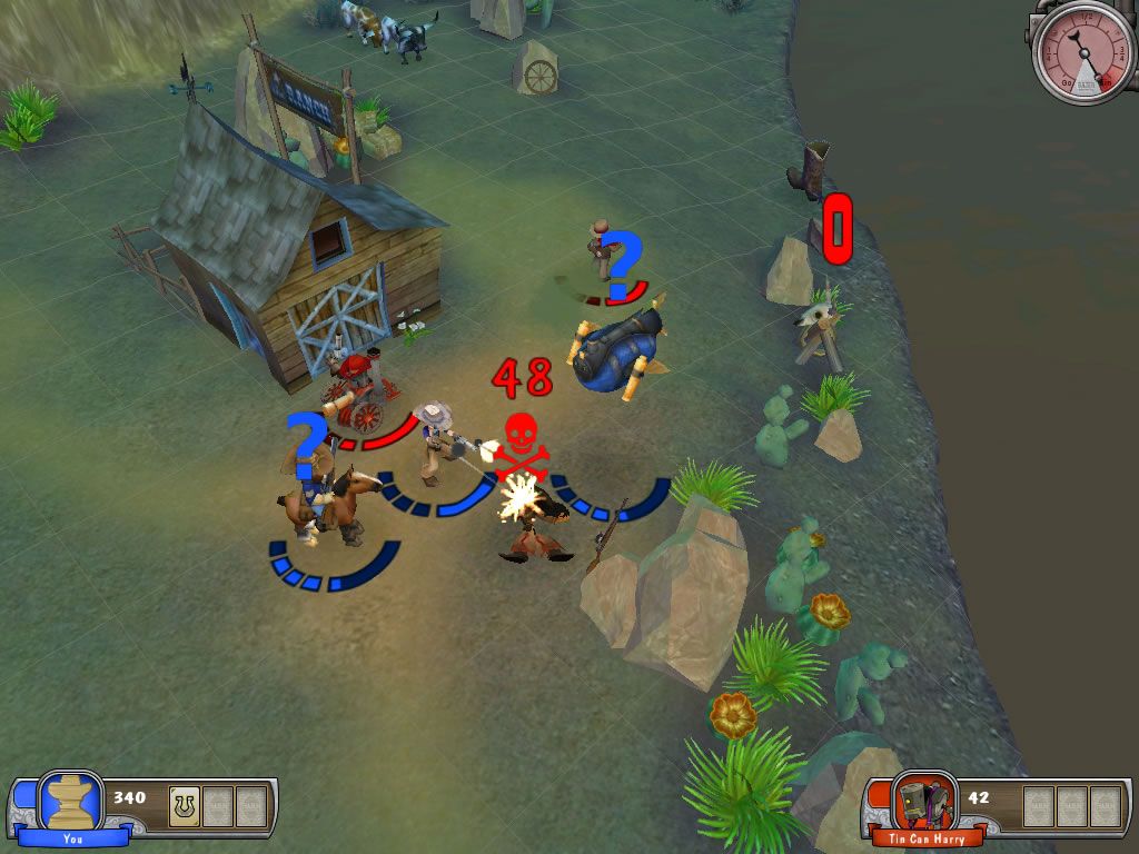 The user interface is clean and intuitive. Health bars and cooldown timers appear on click, while tooltip windows clarify special abilities and terrain modifiers. Although the visual style skews cartoony, the attention to detail—like dust clouds kicking up under hoofed units or the glint off a sharpshooter’s rifle—adds polish and keeps each skirmish feeling visually rewarding.