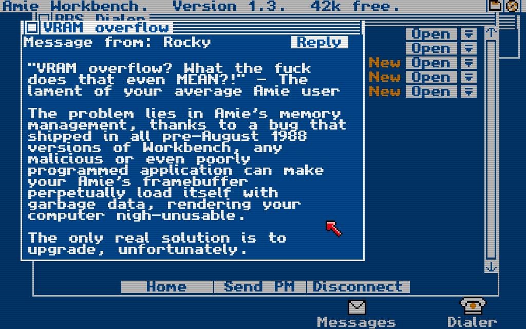 At its core, Digital: A Love Story is a tale of connection in an analog world. You play as a new owner of the Amie Workbench, quickly drawn into the orbit of Emilia, a charismatic poet posting on a private BBS. What begins as casual chats about sonnets and science fiction soon blossoms into a heartfelt romance conducted entirely through electronic pulses and printed text.