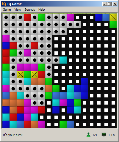 IQ Game presents a deceptively simple yet deeply strategic experience. At its core, you and a computer-controlled opponent take turns selecting coloured blocks adjacent to your current territory. When you select a block, it and every same-coloured block connected to your territory become yours, expanding your reach in dramatic sweeps. The restriction against choosing the same colour twice in a row—or after your opponent’s selection—ensures each decision carries weight.