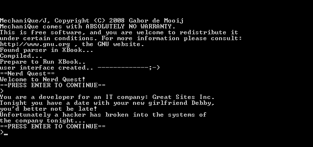 Nerd Quest casts you as a software developer at Great Sites Inc., a company that’s just fallen victim to a devious hacker. This nefarious digital saboteur has compromised critical systems and is gleefully toying with your workflow. Worse, every security breach delays your exit—and you’ve got a hot date with Debbie that you can’t afford to miss.