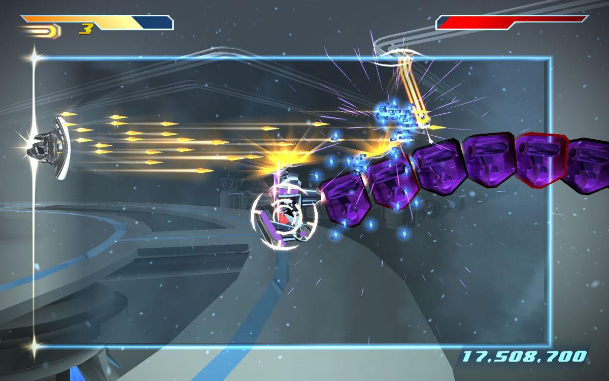The user interface complements the action without cluttering the view. Meters, score counters, and power-up icons are cleanly integrated into screen edges, preserving the playfield’s immersion. Boss encounters introduce larger-than-life models with distinctive design flourishes, and brief transition animations heighten the drama without overstaying their welcome. Overall, the presentation is polished and consistent, making each level a striking audiovisual package.