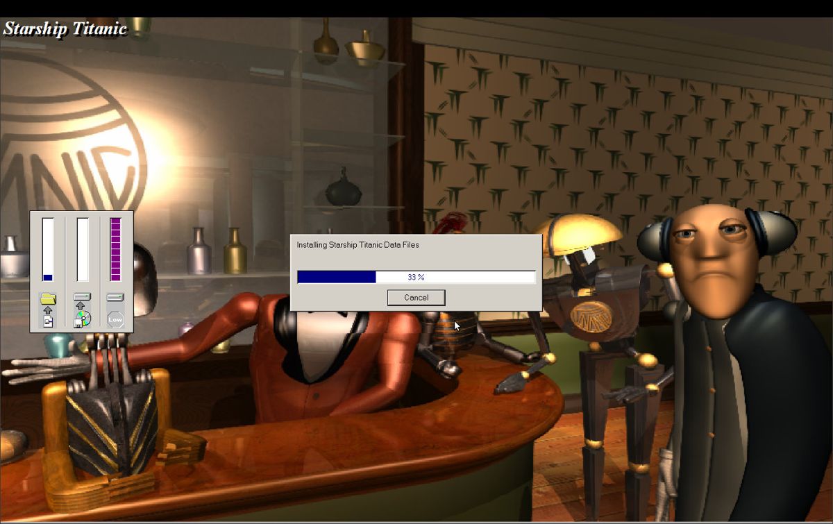Cutscenes and transitional animations are used sparingly but effectively, framing key story beats without interrupting the gameplay flow. While you won’t find real-time lighting or dynamic shadows, the overall aesthetic remains charmingly retro. If you appreciate the nostalgic beauty of late-’90s adventure games, you’ll find Starship Titanic’s visual presentation both evocative and delightful.