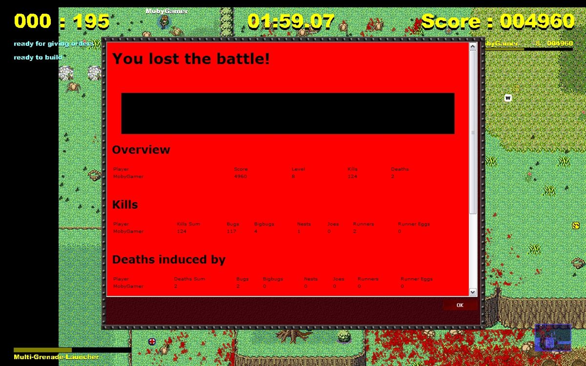 Graphically, Walkover embraces a bold 2D art style that balances clarity with chaotic spectacle. The game engine effortlessly renders over a thousand alien bugs swarming the screen, each crawling, leaping, or spilling goo in vibrant splatter effects. This scale of battle never feels cluttered thanks to clean character outlines and contrasting color palettes for friendlies and foes.