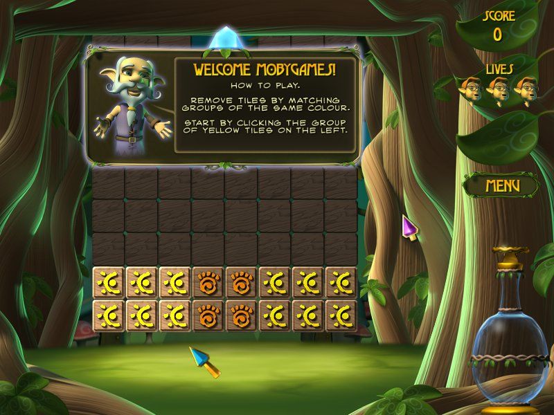 The core gameplay of A Fairy Tale revolves around a match-and-clear puzzle system that feels both accessible and challenging. Players use their mouse to click on tiles or groups of same-colored tiles and then select another group to swap or remove. When a successful match is made, the tiles disappear, points are awarded, and a shimmering magical essence is added into the fairy village’s jar. This simple interaction loop creates an immediate sense of progress as each match contributes to the overarching goal of saving the fairy realm.