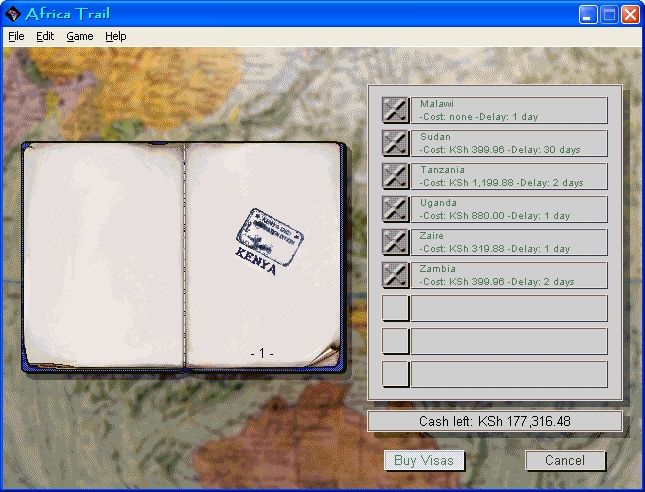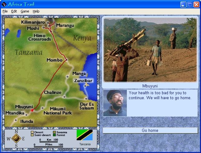 Visually, Africa Trail leans into a stylized, map-centric presentation rather than high-fidelity 3D. The world unfolds on a series of illustrated travel maps, each region rendered with iconic landmarks: the Nile River snaking through Egypt, the jungles of the Congo Basin, and the towering Drakensberg Mountains of South Africa. While not visually cutting-edge by modern standards, these hand-drawn scenes evoke the diversity of African landscapes in a charming, educational manner.