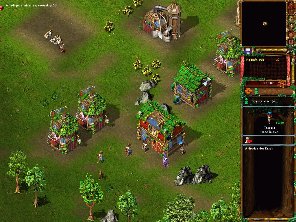 Alien Nations adopts an isometric 2D perspective reminiscent of late ’90s strategy titles. The environments are rich with animated details: smoke drifting from chimneys, workers hauling logs, and rivers gently gurgling through the terrain. Though the visuals may appear dated by modern standards, the charming pixel art style has aged gracefully and provides clear visual feedback on resource flows and building statuses.