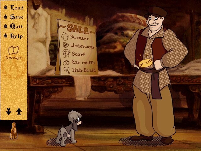 The core of Anastasia: Adventures with Pooka and Bartok! revolves around traditional point-and-click mechanics tailored to a younger audience. Players take on the role of Pooka, Anya’s loyal puppy, navigating through five distinct scenes inspired by key moments in the animated film. Each scene requires careful observation and interaction with the environment to collect items, trigger events, and unravel light puzzles that drive the adventure forward.