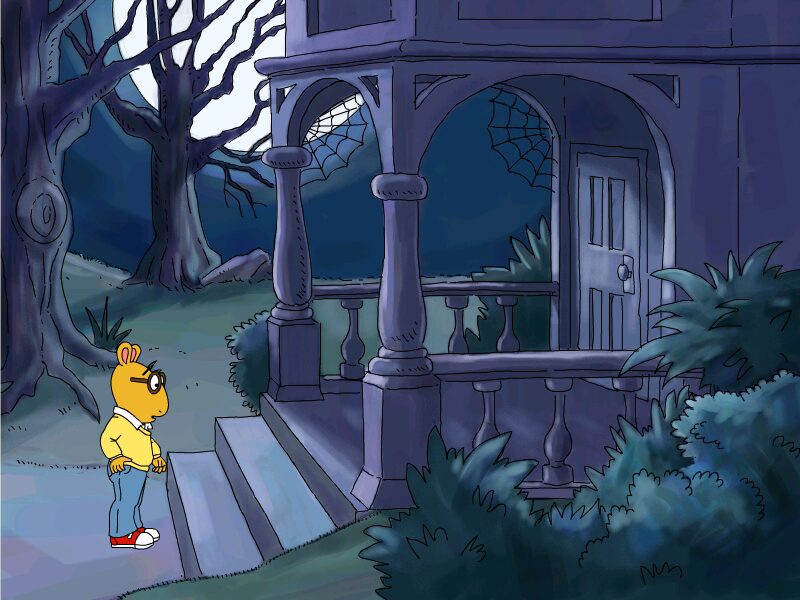 Each of the five areas is distinct in color palette and design. Arthur’s Neighborhood features sunlit sidewalks and leafy lawns, while the Haunted House boasts moody purples and flickering candlelight. Background animations, such as passing clouds or fluttering bats, add a sense of life to the levels.