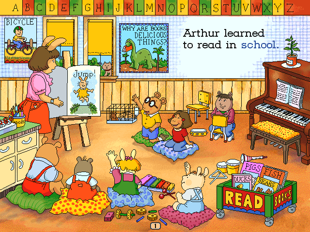 True to the Living Books legacy, Arthur’s Reading Race features vividly colored, hand-drawn artwork reminiscent of the beloved TV series. Every screen feels like a page from an interactive picture book, with rich backgrounds and expressive character animations that bring Arthur’s world to life.