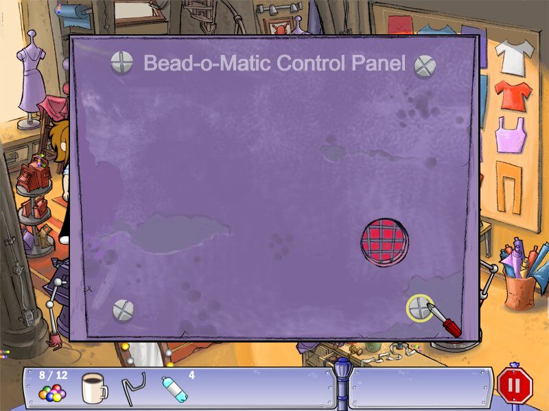 Beyond simple item combinations, Avenue Flo spices things up with themed mini-games tied to specific shops and locales. In the boutique, you’ll follow a bead-sewing pattern on a wedding dress. At the pet shop, you’ll fit bags of food into a cramped box in Tetris-style. The fitness center features a rhythm-based exercise wheel where timing and pattern recognition are key. All these diversions feel integrated into the narrative, giving the game a pleasant variety without ever feeling tacked on.