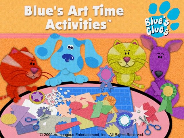 The visual presentation of Blue’s Art Time Activities is bright, colorful, and entirely faithful to the beloved Blue’s Clues television series. Every character—Blue, Steve, Periwinkle, Marky Marker, Al Luminum, and Chalk Girl—retains their signature design and expressive animations. Backgrounds are rendered in simple, bold strokes that mimic a child’s coloring book, reinforcing the feeling that the player is stepping into Blue’s world directly.