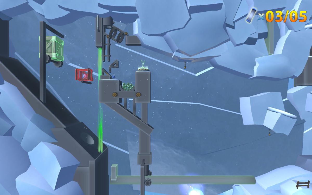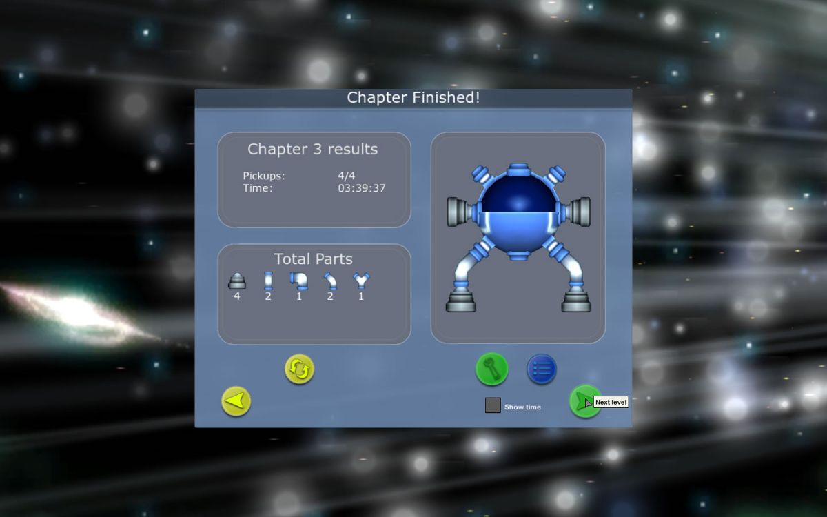 The game unfolds over 14 distinct chapters, each serving as a self-contained puzzle arena. Early levels teach you basic thruster use and how to bash through obstacles, while later stages demand precise configurations to access narrow passages or use directional thrusts to activate levers. Optional parts hidden throughout the map invite replayability—sometimes you’ll need a clever contraption of tubes and joints to reach a secret upgrade. There’s no timer or health bar, so you won’t feel rushed; instead, the focus remains squarely on problem solving.