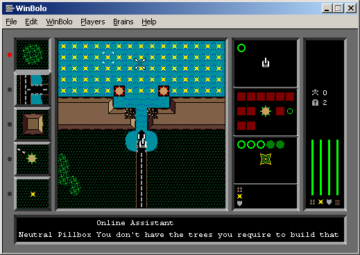 Bolo’s gameplay centers on a deceptively simple top-down tank combat system that quickly reveals layers of strategic depth. You pilot your tank across ten distinct terrain types—plains, forests, water, and more—each affecting your movement and tactical options. Beyond driving and shooting, you can lay mines, capture pillbox turrets that automatically fire on the enemy, and defend key positions on the map.