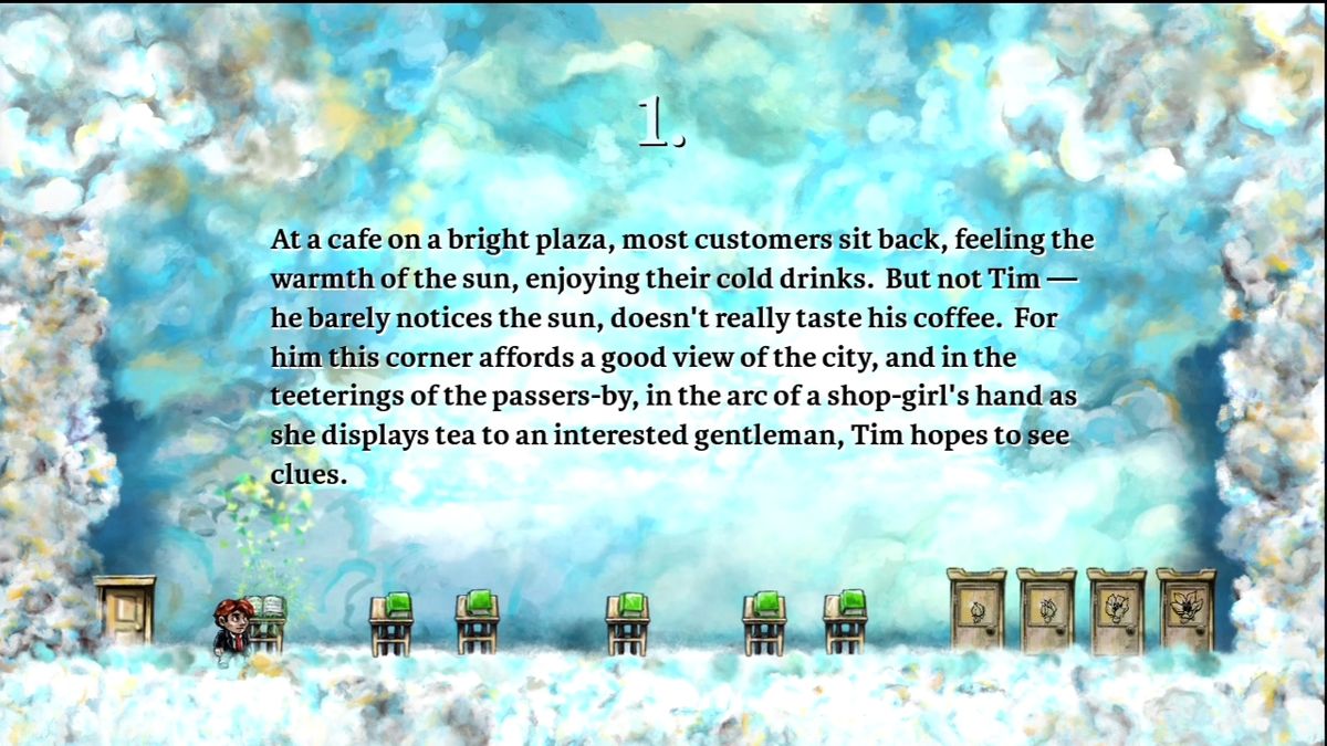 At first glance, Braid appears to be a straightforward rescue narrative: Tim is searching for a princess he once knew and lost. However, as you collect puzzle pieces scattered throughout each world, you begin to piece together fragments of Tim’s past and the deeper meaning behind his quest. Rather than deliver a linear plot, the game offers glimpses of memory and emotion that invite interpretation.