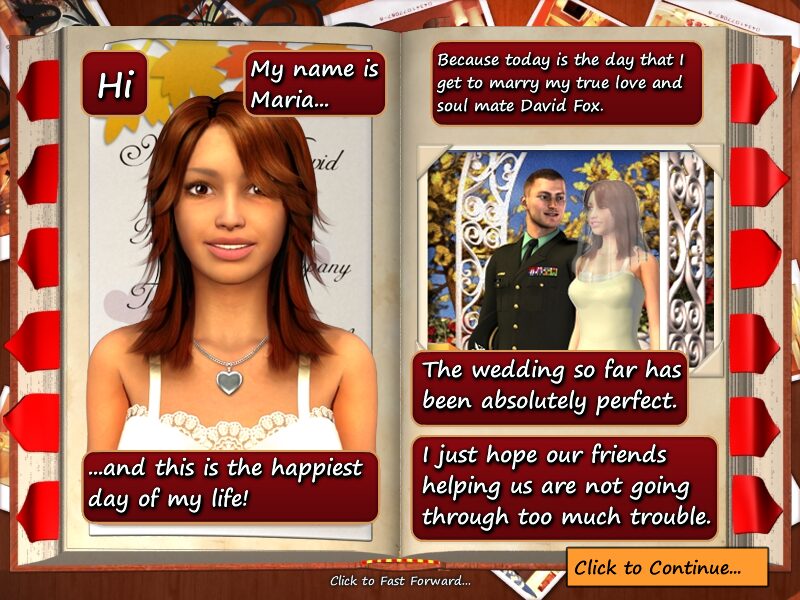 At its heart, Broken Hearts: A Soldier’s Duty tells a deeply personal tale. You step into the shoes of Maria Lopez, a newlywed whose world is turned upside down when her husband, David Fox, is called away on duty. The setup—tropical honeymoon cut short by military orders—immediately establishes tension and emotional stakes. This isn’t just another treasure hunt; it’s an exploration of love, loss, and remembrance.