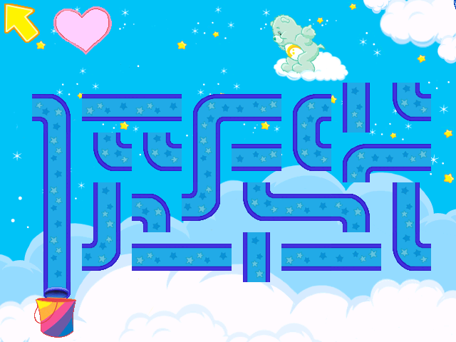 Controls are simple yet varied across each mini-game, combining mouse-driven pointing and clicking with occasional keyboard input. For example, in Cheer & Grumpy Bear’s Rainbow Bowling you position the bear and set an arrow direction before rolling the ball, while in Bedtime Bear’s Snooze Ball you use flippers to nudge bumpers and awaken sleepy Star Buddies. Each game’s instructions appear before you start, ensuring players understand objectives without feeling overwhelmed.