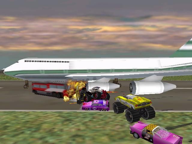 The game introduces a host of new power-ups, from homing missiles to giant fans that hurl rival cars off the track, adding strategic depth to the vehicular carnage. The level designs become progressively more elaborate, featuring sprawling cities, hazardous industrial zones, and bizarre rural landscapes filled with hidden shortcuts and explosive hazards. Learning each track’s quirks and weapon placement is key, rewarding exploration and offering plenty of replayability for those who enjoy mastering mayhem.