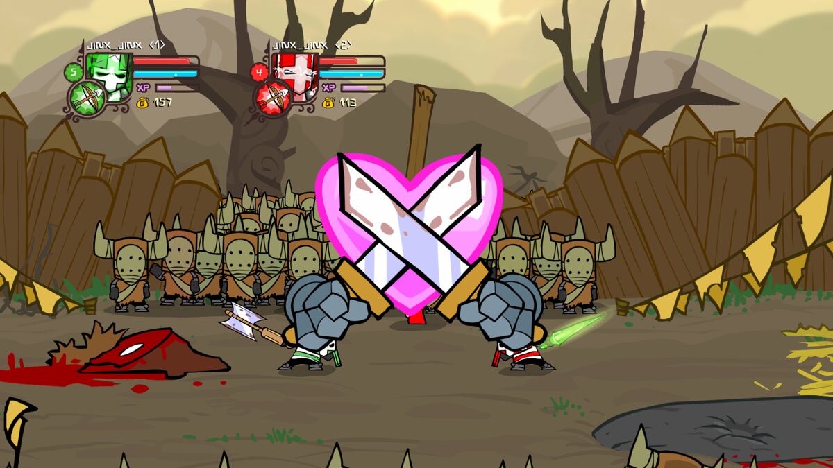 On modern hardware, Castle Crashers runs smoothly at a high frame rate, even when the screen fills with enemies, spells, and environmental effects. Whether you’re chasing a runaway pig through a forest or battling a giant ogre atop a crumbling tower, performance remains rock solid. The sound design complements the visuals perfectly—sword clashes, spell whooshes, and comedic voice grunts sync tightly with each visual moment, reinforcing the game’s cartoonish appeal.