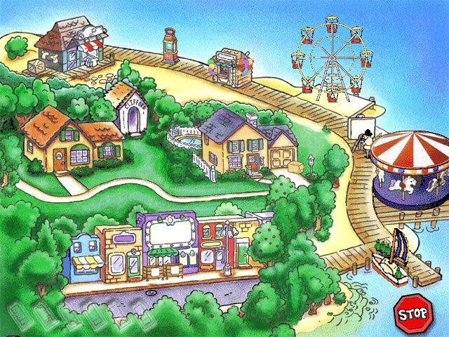 User interface elements are thoughtfully designed for young hands and developing coordination. Large buttons on the map screen clearly indicate each location, and visual cues guide players on where to click next. Text is displayed in a legible, child-friendly font, and audio prompts ensure that children who are not yet fully reading can still follow instructions. Overall, the graphics strike a fine balance between instructional clarity and whimsical charm.
