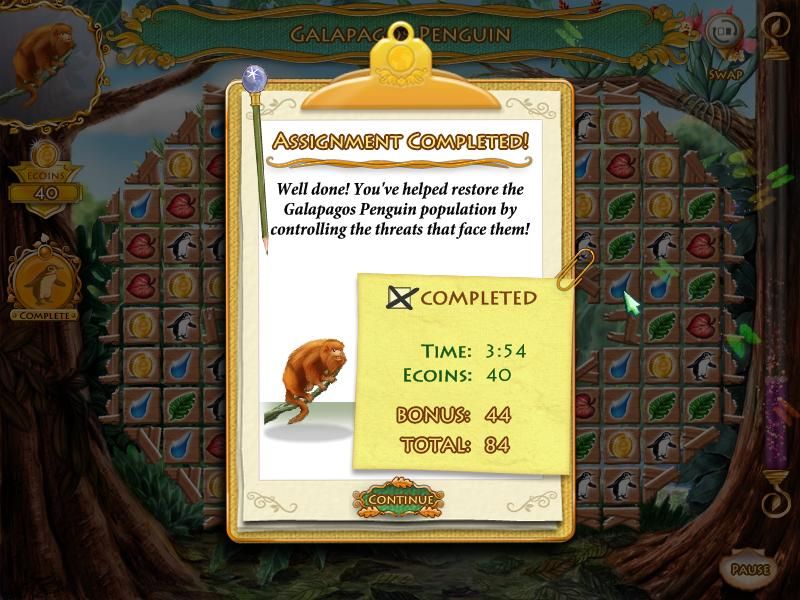 Story elements unfold between puzzle sets via brief cutscenes and dialogue boxes. After funding a project—say, an animal refuge—you receive a snapshot of progress: rescued wildlife strolling through lush enclosures or seedlings taking root in a deforested area. These narrative vignettes are concise but impactful, reinforcing how your puzzle-solving directly translates into positive environmental change.