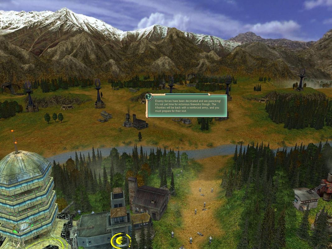Each faction features distinctive color palettes, unit designs, and environmental aesthetics that make it easy to identify allies and enemies at a glance. The Land of the Fathers favors classical stone architecture on hilltops, whereas the Barbarians utilize makeshift wooden palisades and hill forts. Animations are smooth, from hovering gunships to tanks rolling through muddy fields, and explosions and particle effects are satisfyingly dramatic without overwhelming the screen.