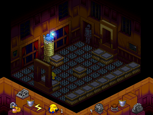Head Over Heels revolves around the ingenious mechanic of controlling two distinct heroes—Mr. Head and Mr. Heels—each boasting unique abilities. Mr. Head can fire energy bolts to hit distant switches and defeat enemies, while Mr. Heels excels at high jumps and quick sprints. Players must switch between the two characters on the fly, leveraging their strengths to solve complex puzzles and traverse the game’s isometric environments.