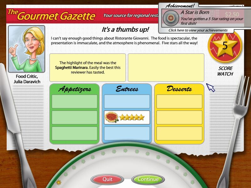 Though the graphics aren’t cutting-edge, they serve the gameplay superbly with their bright palette, clear icons, and playful animations. The modest story framework—training to impress a critic, switching between themed restaurants, encountering quirky chefs—ties everything together without overcomplicating the experience. It’s a recipe for fun that doesn’t overstay its welcome.