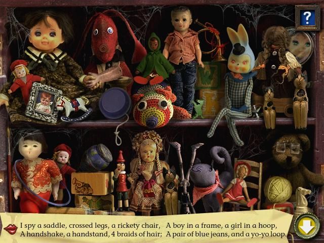 I Spy Spooky Mansion: Deluxe builds on the classic point-and-click design of its 1999 predecessor, offering intuitive controls that even the youngest players can master. The bottom-right arrow button lets you back out of puzzles or navigate between rooms seamlessly, while the question-mark icon in the top-right corner provides spoken hints to guide you through trickier challenges. This simple interface ensures that children ages 6–10 can focus on the fun of discovery without getting bogged down by complicated menus.