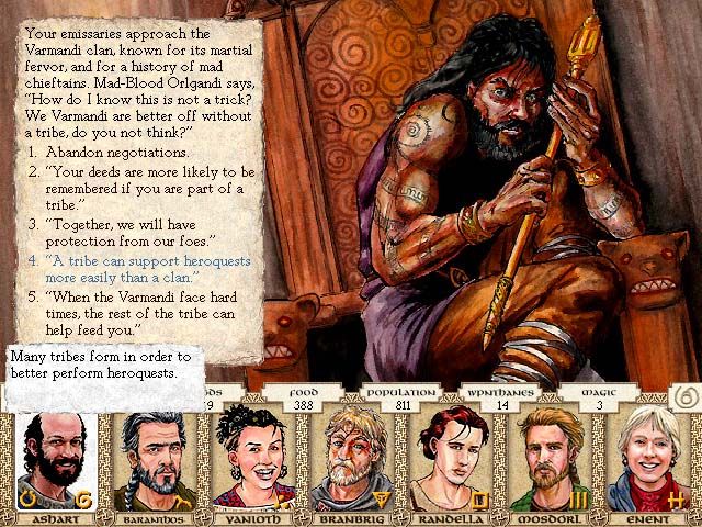 Central to your rule is the Council of Seven, drawn from your nobility according to skill and divine patronage. Selecting advisors whose strengths align with your current challenges—trade, diplomacy, war, or magic—is crucial, as each council member will interpret events through their own lens. When a councillor proves more hindrance than help, you may be forced to remove or outlaw them, highlighting how personal relationships and power struggles can shape your clan’s fate.